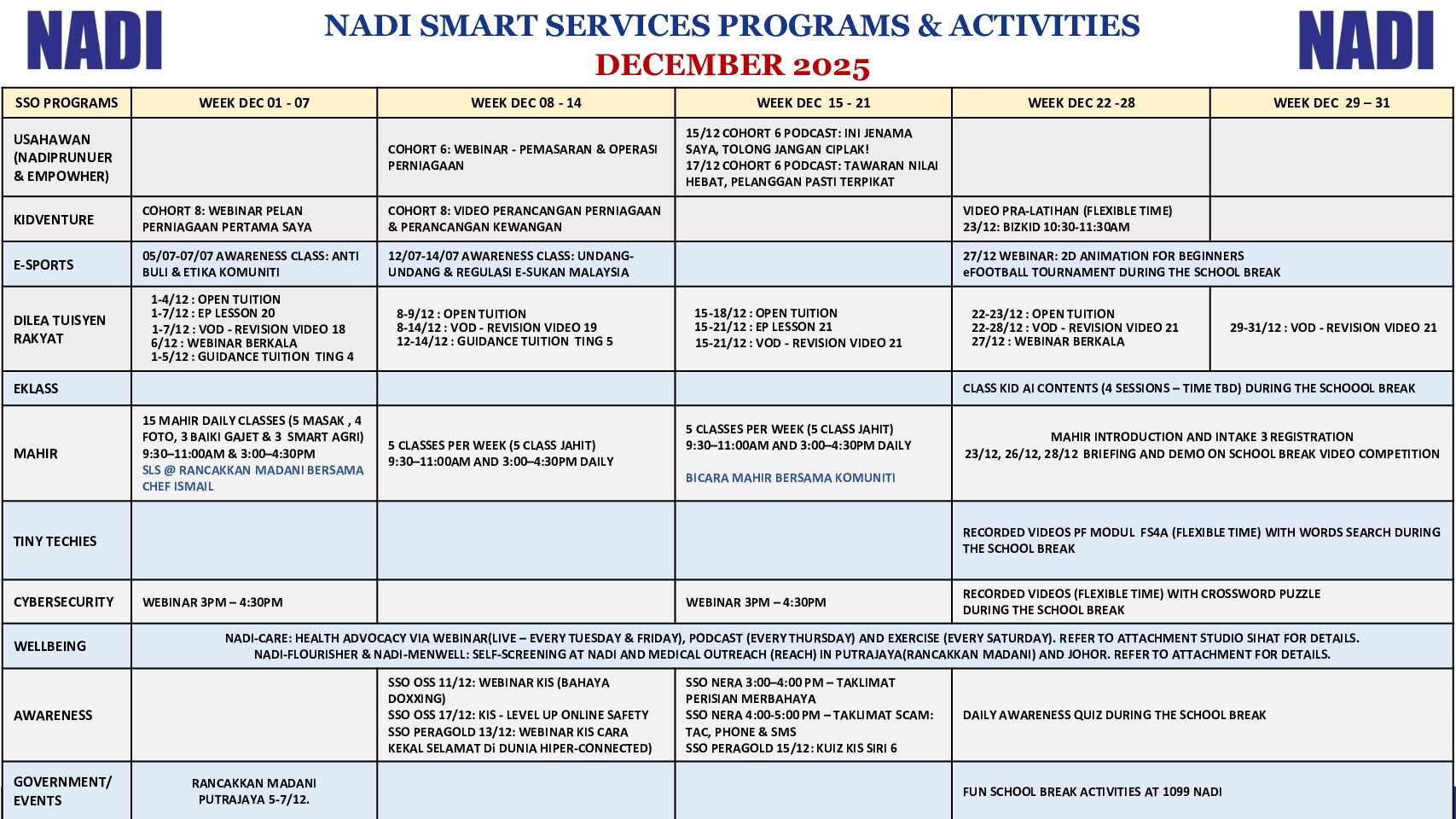 JADUAL AKTIVITI BULAN DISEMBER 2025