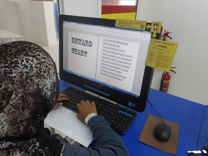 Kelas ini bertujuan membantu pelajar membuat senarai nama pelajar kelas menggunakan asas kolum pada microsoft word bagi melengkapkan tugasan ‘reward chart’.