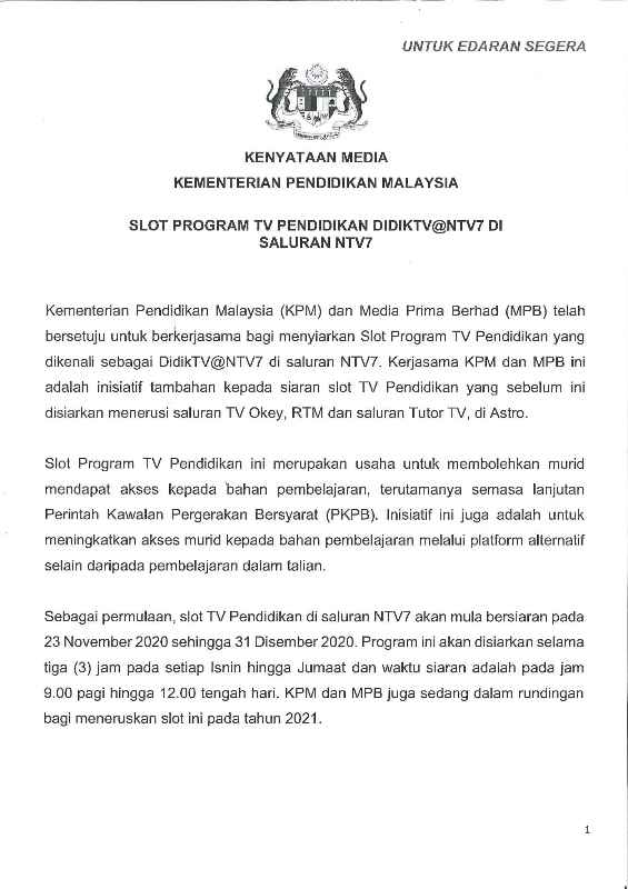 SLOT PROGRAM TV PENDIDIKAN DIDIKTV @ NTV7 DI SALURAN NTV7