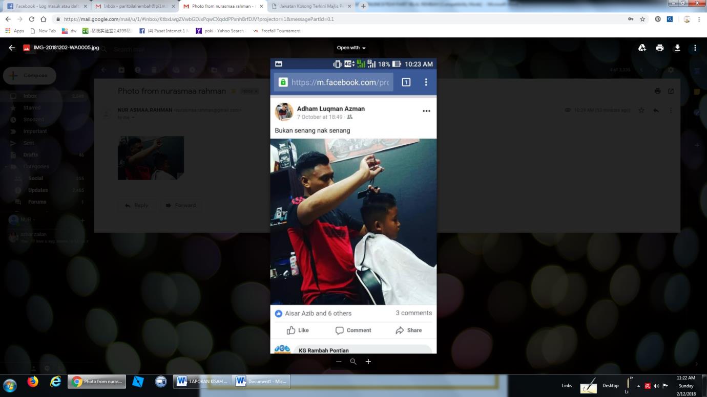 Oleh yang demikian, beliau mengambil langkah memperluaskan lagi rangkaian pengiklanan perkhidmatan Gunting Rambut beliau. Melalui bimbingan petugas pusat internet, beliau diterangkan secara lisan tentang asas keusahawan contohnya kemahiran usahawan ‘online’, penjualan melalui telefon, cara merekod tempahan dan melayari laman internet bagi tujuan pemasaran terbaik. Beliau juga menggunakan medium telefon (whatsapp) dan ‘faceboook’ bagi tujuan pemasaran. Hasilnya, beliau banyak menerima tempahan untuk menggunting rambut sekaligus dapat meningkat 2 kali ganda berbanding dahulu iaitu dengan anggaran 10 tempahan kepada 20 tempahan sebulan. Paparan ‘facebook’ Gunting Rambut beliau boleh di lihat atas nama Adham Luqman Azman.